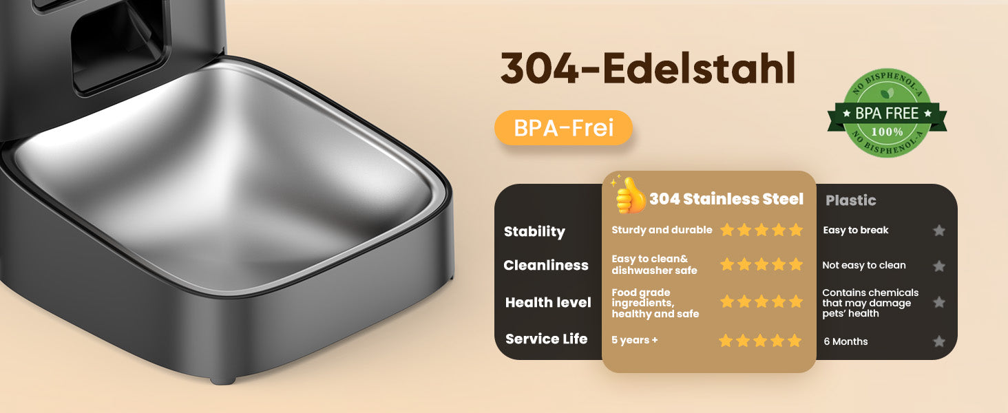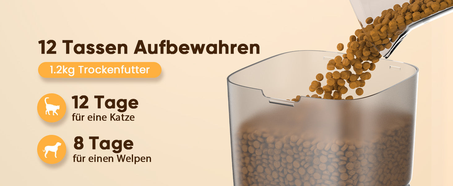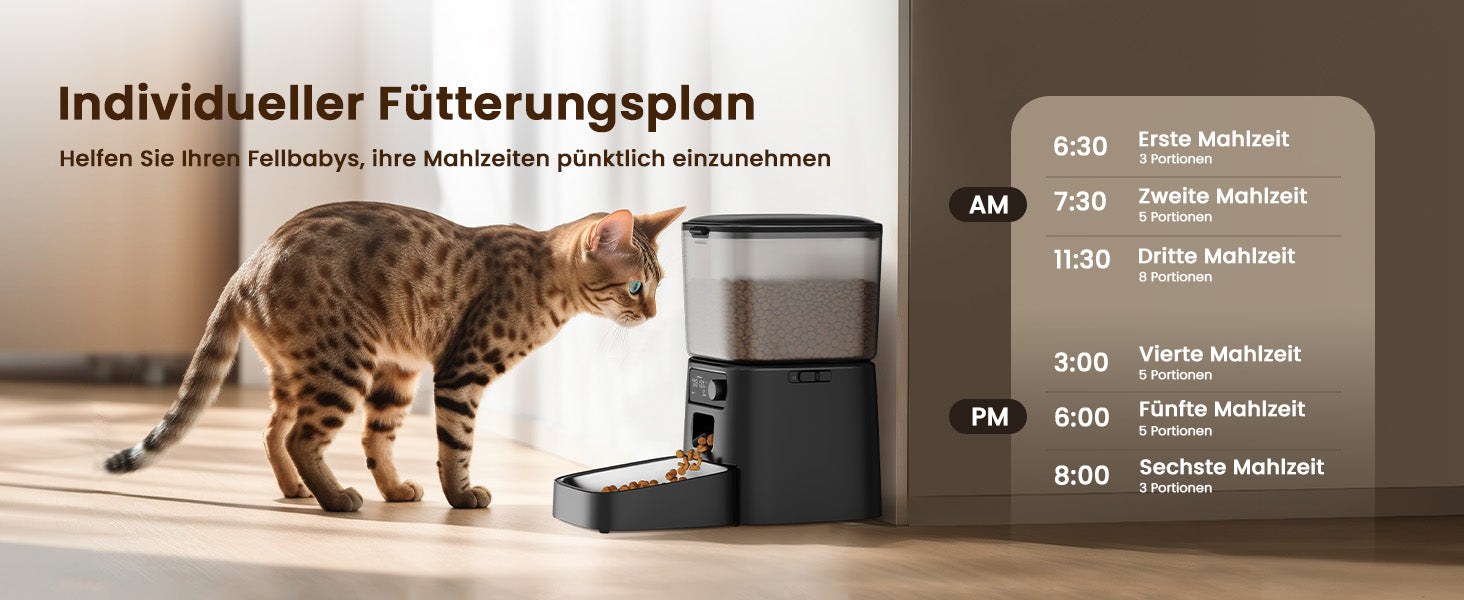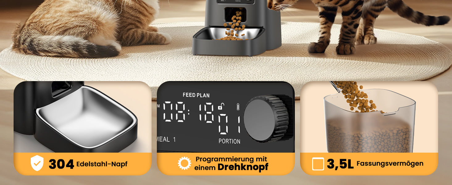 • Geplante Fütterung mit Portionskontrolle und Frischeverschluss