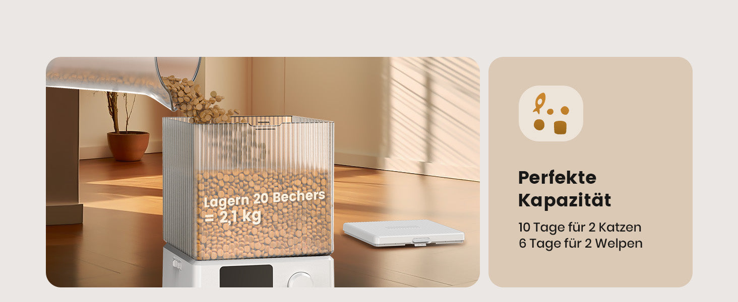 • Geeignet für Trockenfutter bis 1,2 cm Größe