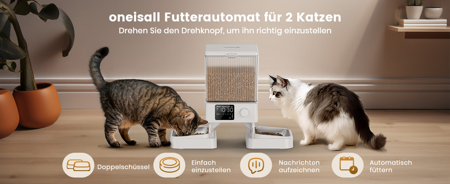 Oneisall 5L Automatischer Katzenfütterer für zwei Katzen Weiß
