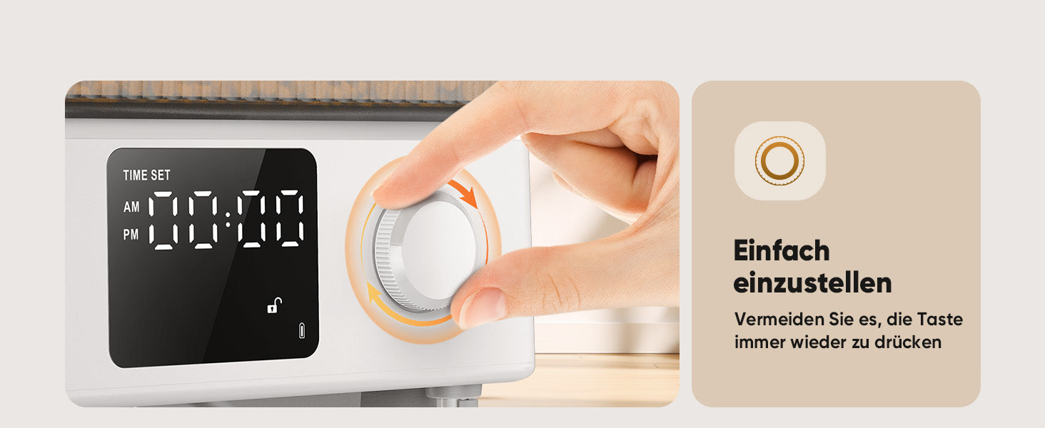 • Einfache Einrichtung mit intuitivem Drehregler für mühelose Bedienung