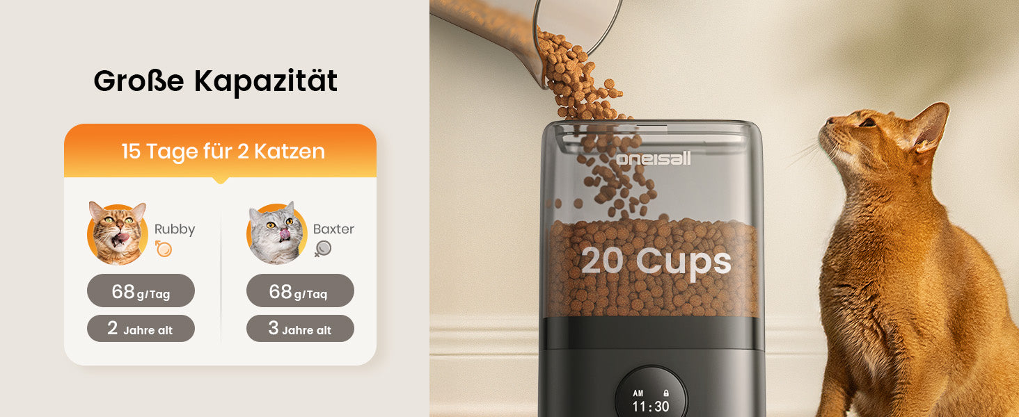 - Portionskontrolle: Achten Sie auf einstellbare Portionen, um die Ernährung Ihrer Katze zu steuern.