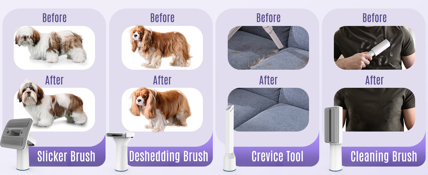 - Pflegebürste: Entfernt lose Haare und Hautschuppen, hält das Fell gesund, glänzend und weich.